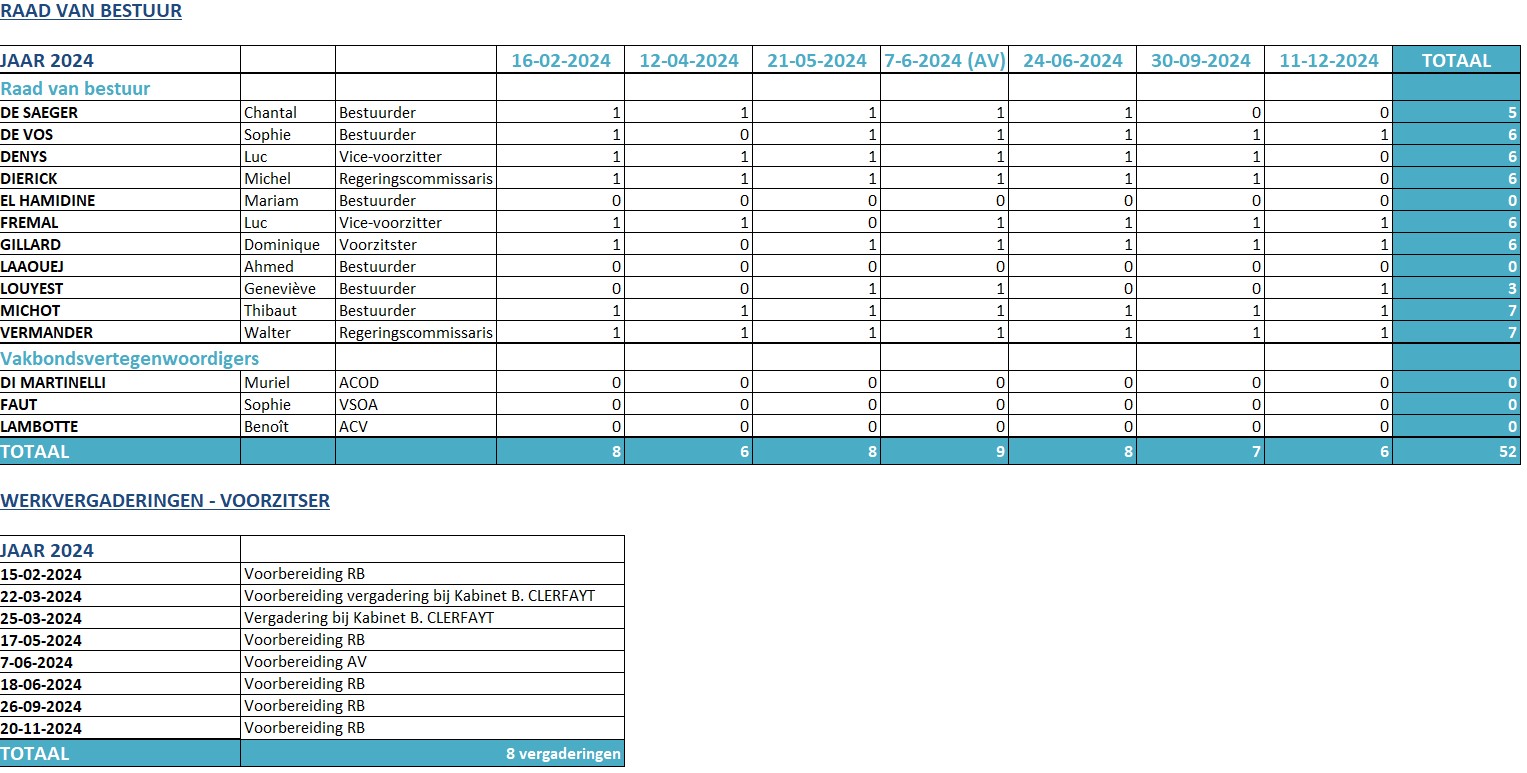 Overzicht van de aanwezigheden en vergoedingen van de mandatarissen in 2024
